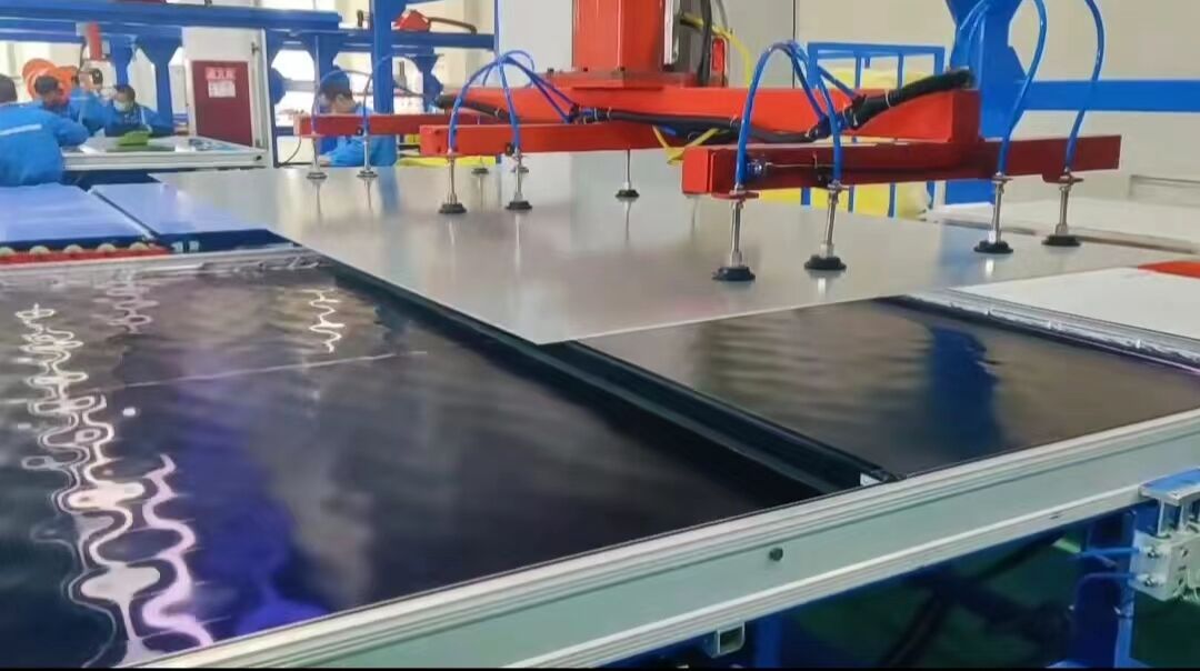 近年,海宏科技為太陽雨集團打造的拉薩基地大型平板太陽能集熱器項目建成投產(chǎn)。該生產(chǎn)線擁有國內(nèi)首臺根據(jù)西藏的環(huán)境特點自主開發(fā)的大型平板多槍焊接機,以及能夠在大型平板集熱器上實現(xiàn)自動打膠的全自動打膠玻璃安裝平臺。生產(chǎn)線每年可生產(chǎn)大型太陽能平板集熱器10萬平方米,助力客戶為用戶提供更多元化的清潔熱能系統(tǒng)解決方案,把清潔供暖應用打造成為全國的新高地。