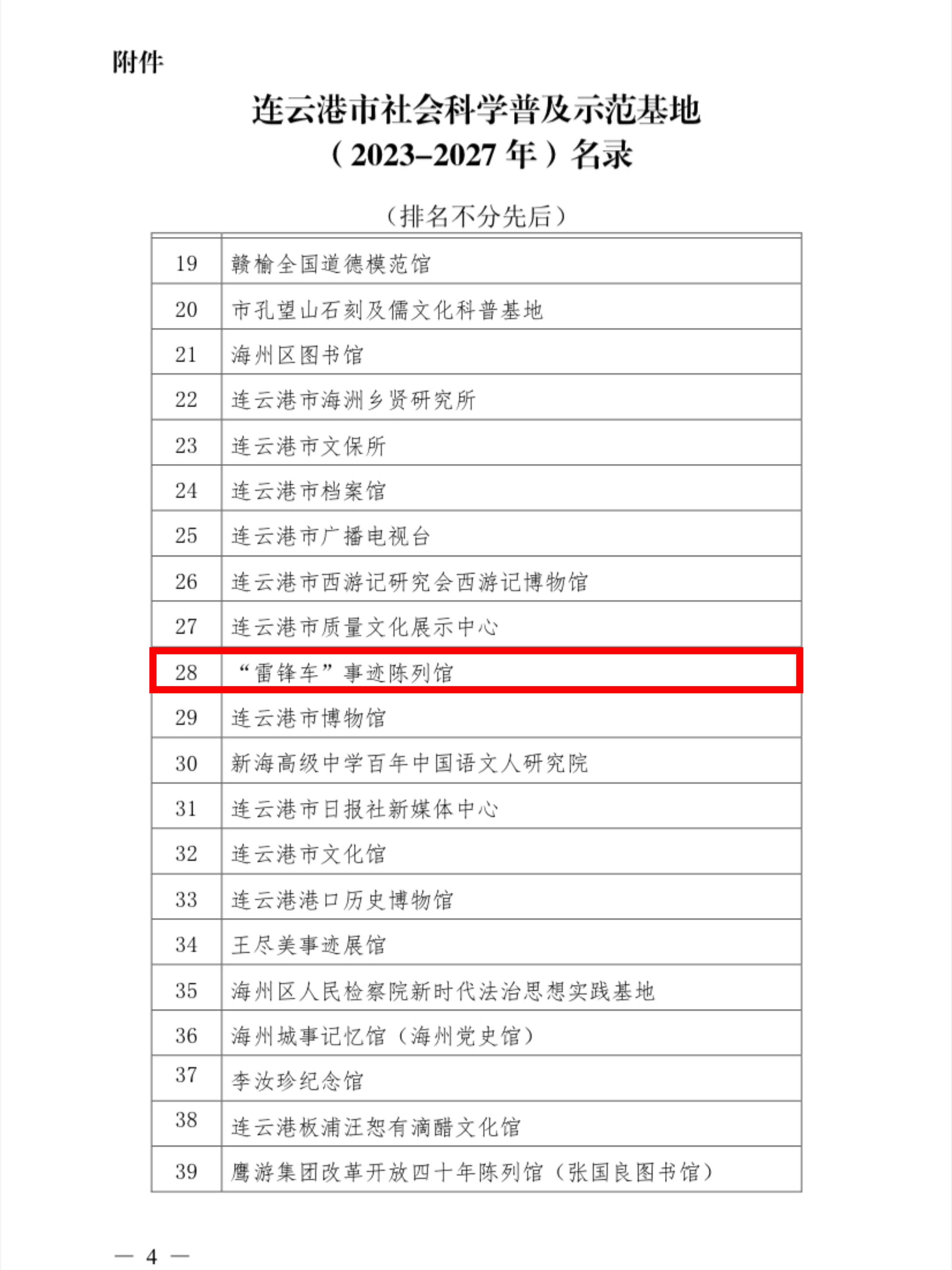 近日,連云港市哲學(xué)社會(huì)科學(xué)界聯(lián)合會(huì)公布連云港市社會(huì)科學(xué)普及示范基地 (2023-2027年)名錄,“雷鋒車”事跡陳列館榜上有名。